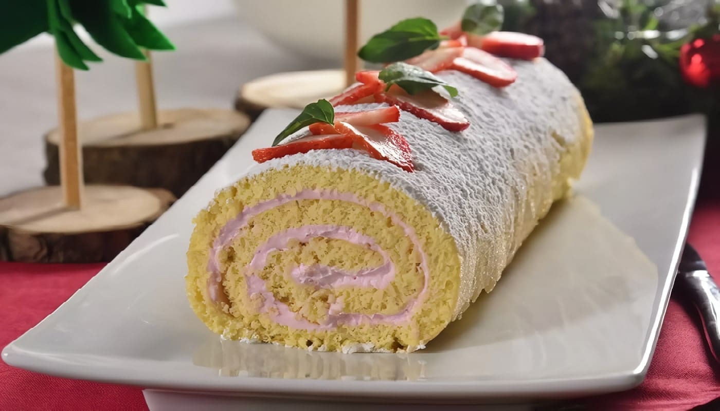 Y listo! Tu roulade de Navidad está lista para ser servida. Puedes personalizarla con diferentes mermeladas y frutas frescas según tus gustos. ¡Buen provecho!